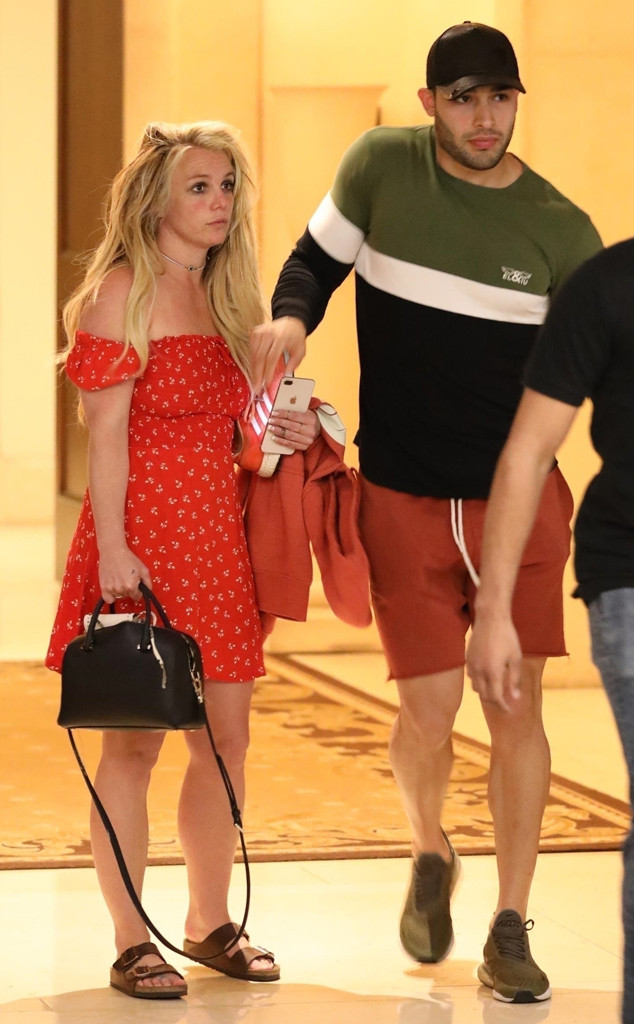 Spears was seen Sunday at the Montage Beverly Hills after spending Easter with boyfriend, Sam Asghari. The 37-year-old singer wore a red sundress, and appeared disheveled as she carried her belongings out of the hotel and into a waiting car.